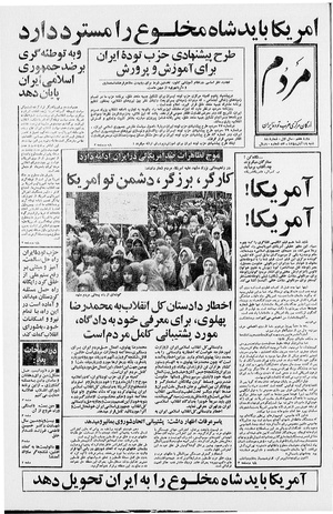 روزنامه مردم روز شنبه ۱۹ آبان ماه ۱۳۵۸