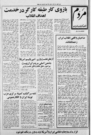 روزنامه مردم روز شنبه ۱۹ خرداد ماه ۱۳۵۸