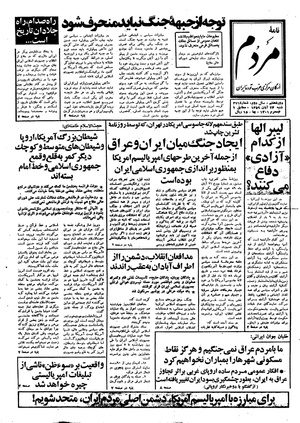 روزنامه مردم روز شنبه ۲۴ آبان ماه ۱۳۵۹