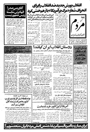 روزنامه مردم روز شنبه ۲۵ بهمن ماه ۱۳۵۹
