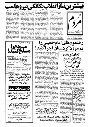 روزنامه مردم روز شنبه ۸ شهریور ماه ۱۳۵۹