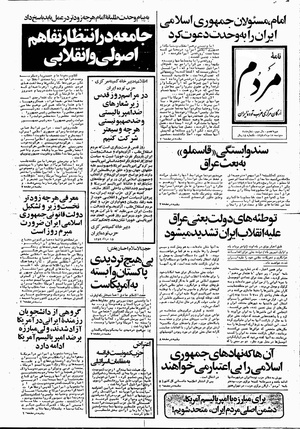 روزنامه مردم روز پنجشنبه ۱۶ امرداد ماه ۱۳۵۹