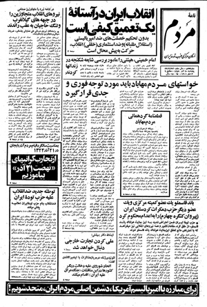 روزنامه مردم روز پنجشنبه ۲۰ آذر ماه ۱۳۵۹