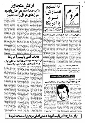 روزنامه مردم روز پنجشنبه ۲۲ آبان ماه ۱۳۵۹