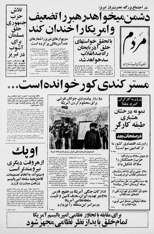 روزنامه مردم روز پنجشنبه ۲۲ آذر ماه ۱۳۵۸