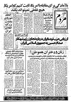 روزنامه مردم روز چهارشنبه ۱۶ مهر ماه ۱۳۵۹