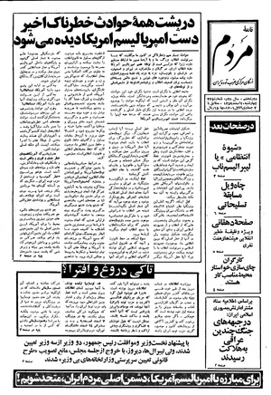 روزنامه مردم روز چهارشنبه ۲۰ اسفند ماه ۱۳۵۹