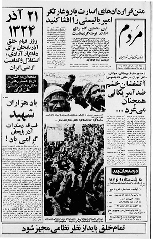 روزنامه مردم روز چهارشنبه ۲۱ آذر ماه ۱۳۵۸