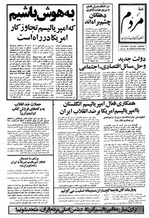 روزنامه مردم روز چهارشنبه ۲۹ امرداد ماه ۱۳۵۹