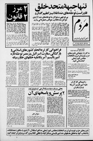 روزنامه مردم روز چهارشنبه ۸ اسفند ماه ۱۳۵۸