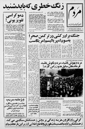 روزنامه مردم روز یکشنبه ۲۱ بهمن ماه ۱۳۵۸