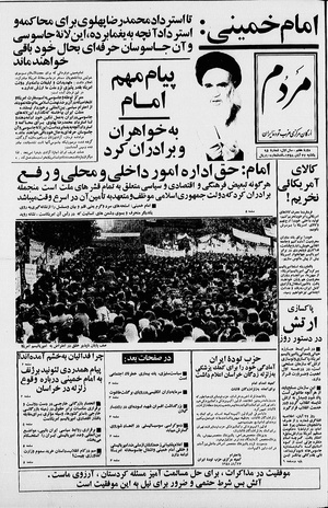 روزنامه مردم روز یکشنبه ۲۷ آبان ماه ۱۳۵۸