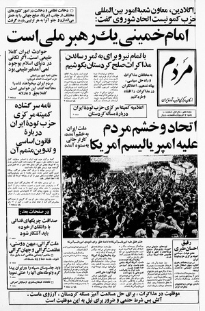 روزنامه مردم روز یکشنبه ۴ آذر ماه ۱۳۵۸