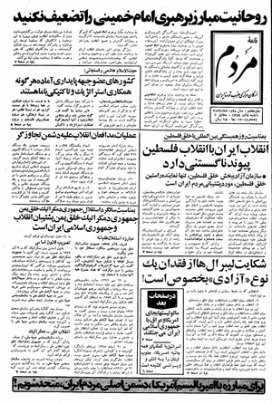 روزنامه مردم روز یکشنبه ۹ آذر ماه ۱۳۵۹
