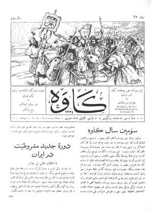 روزنامه کاوه سال سوم شماره ۲۵ جمعه ۲۶ بهمن ۱۲۹۶