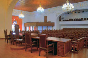 مجلس شورای ملی - مجلس شورای ملی دستاورد انقلاب مشروطه ایرانیان بود. نخستین نشست مجلس دوره اول در ۱۴ مهرماه ۱۲۸۵ در کاخ گلستان برگزار شد. [۱] نخستین نظام نامه یا آیین نامه مجلس شورای ملی در روز ۲۵ مهر ماه ۱۲۸۵ خورشیدی به تصویب مجلس شورای ملی دوره قانونگذاری نخست رسید.[۲] پس از گشایش مجلس شورای ملی و مجلس سنا در نشست نخست بر پایه آیین نامه مجلس، رییس، دو نایب رییس، چهار منشی برگزیده می شوند که در آن سه چهارم نمایندگان باید باشند.