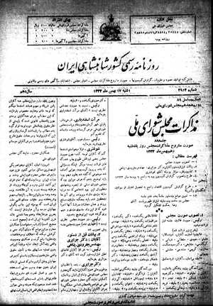 صورت مشروح مذاکرات مجلس روز یکشنبه دهم بهمن ماه ۱۳۳۳