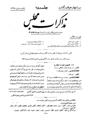 مذاکرات مجلس شورای ملی ۱۱ مهر ۱۳۲۳ نشست ۶۸