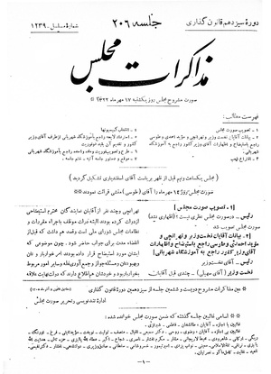 مذاکرات مجلس شورای ملی ۱۷ مهر ۱۳۲۲ نشست ۲۰۶