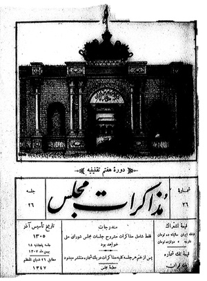 مذاکرات مجلس شورای ملی ۱۸ بهمن ۱۳۰۷ نشست ۲۶