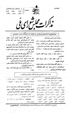 صورت مشروح مذاکرت مجلس روز پنجشنبه ۱۸ خردادماه ۲۵۳۷ شاهنشاهی