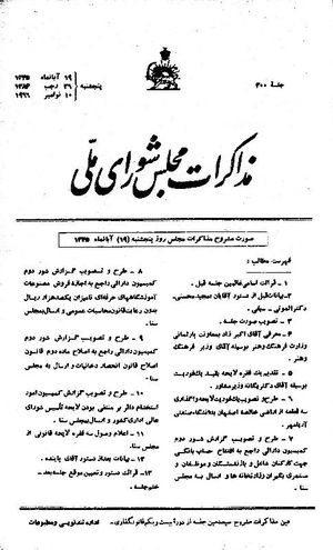 اینک گزارش آن را به مجلس شورای ملی تقدیم میدارد.