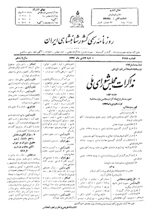صورت مشروح مذاکرات مجلس روز سهشنبه ۱۹ دی ماه ۱۳۳۴