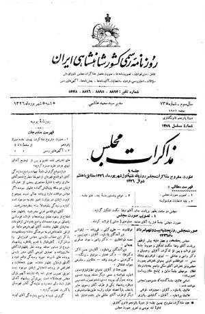 صورت مشروح مذاکرات مجلس روز یکشنبه اول شهریور ماه ۱۳۲۶ مطابق با هفتم شوال ۱۳۶۶