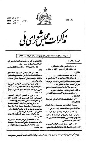 مذاکرات مجلس شورای ملی ۲۰ خرداد ۱۳۴۴ نشست ۱۸۵