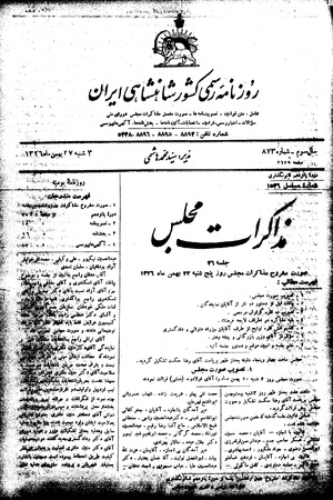 شامل: متن قوانین - تصویبنامهها - صورت مفصل مذاکرات مجلس شورای ملی - سوالات - اخبار رسمی - فرامین - انتصابات - آییننامهها - بخشنامهها - آگهیهای رسمی