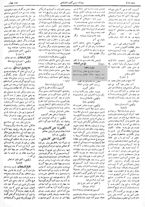 آقا میرزا علی کازرونی - در این که باید یک طرزی پیشبینی شود که اختلافی فیمابین اجزای گمرک واقع نشود شبهه نیست لیکن این طوری که پیشنهاد کردهاند در صورتی که بین گمرک و صاحبان مال موافقت حاصل نشود از عین مال صدی چهار دریافت شود بنده این را بیشتر اسباب زحمت هم به جهت تجار و هم به جهت گمرک میدانم و دلیلش هم این است که صاحب کتیرا مثلاً ده پانزده من کتیرا دارد و آنها را در صندوق و در لفافههای حلبی بسته و اگر بنا باشد بخواهند این صندوقها را باز کنند و از همین کتیرا گمرک بگیرند اولاً صد چهار از ده پانزده من کتیرا چقدر میشود و گمرک آن را چه کند و تا اندازه جمع کند که قابل فروش بشود و خودش بتواند علیحده بفروشد یک ضرر فوقالعاده به جهت تاجر از حیث باز کردن صندوق و معطل شدن در گمرک و غیره فراهم میشود و عقیده بنده این است که بایستی در ابتدای هر سال یک قسمت معینی فیمابین تجار و رئیس گمرک قطع شود برای مدت یک سال به جهت هر نوع از انواع کتیرا که در ضمن مدت یک سال اگر ترقی یا تنزل بکند به همان قیمتی که در ابتدای سال معین شده حساب شود و این ترتیب که بنده عرض میکنم در بعضی از نقاط خارجه هم اطلاع دارم همین طور است و اگر این طور بشود همیشه اوقات هم تجار و هم رئیس و اعضای گمرک راحت و در زحمت و مشاجره نخواهند بود؟