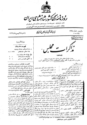 مجلس بیست دقیقه پیش از ظهر به ریاست آقای ملک مدنی نایب رئیس تشکیل گردید. صورت مجلس قبل قرائت و پس از تذکر چند نفر از آقایان نمایندگان چون عده برای اخذ رأی کافی نبود تصویب آن موکول ببعد شد.