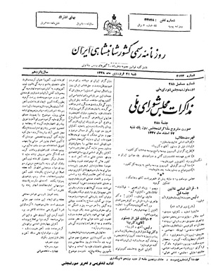 صورت مشروح مذاکرات مجلس روز یکشنبه ۲۴ اسفند ماه ۱۳۳۷