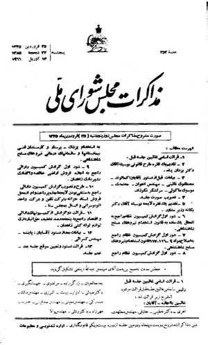 اینک گزارش آن را به مجلس شورای ملی تقدیم میدارد.