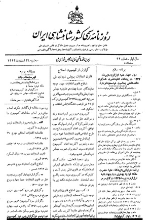 ۷- از خانه‌های مسکونی غیر اجاره شهر بتناسب قیمت از هر ده هزار ریال ببالا هر ده هزار ریال ده ریال در سال ۸- از کشتار هر رأس بز ۵ ریال گوسفند و بزغاله ۶ ریال بره ۸ ریال گاو ۲۵ ریال گوساله ۱۰ ریال ۹- از هر دستگاه رادیو سالیانه ۲۴۰ ریال و تلفن ۱۲۰ ریال ۱۰ – اماکن عمومی بترتیب درجه بندی ۵۰ الی ۶۰۰ ریال در ماه بتشخیص انجمن بنفع شهرداری رابل دریافت و بدرآمد شهرداری منظور گردد. تصویبنامه در دفتر نخست وزیر است. نخست وزیر تصمیم قانونی شماره ۲۳۳۱۶ ۲۳/۱۲/۲۹ وزارت جنگ – کشور تصمیم قانونی دائر بتشکیل کمیسییون هفت نفری برای رسیدگی بواقعه ۱۵ اسفند ماه ۳۲۳ که در جلسه ۲۲ اسفند ماه ۲۳ بتصویب رسیده‌است بشرح زیر ابلاغ می‌گردد. تصمیم قانونی دائر بتشکیل کمیسییون هفت نفری برای رسیدگی بواقعه ۱۵ اسفند ۱۳۲۳ مجلس شورای ملی تصویب می‌نماید کمیسییونی مرکب از هقت نفر بقرعه برای رسیدگی بواقعه روز سه شنبه پانزدهم اسفند ماه و تعیین مسؤلین شلیک از مجلس شورای ملی انتخاب شود.