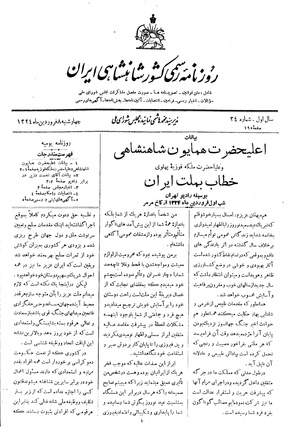 شماره ۷۶۵/۴۱۴ ۲۴/۱/۱۲ وزارت کشور آقای تاصرعلی حجازی کارمند منتظر خدمت از تاریخ ورود بمحل مأموریت با پایه چهار و ۱۴۸۰ ریال حقوق و ۷۴۰ ریال فوق العاده اشتغال خارج از مرکز بسمت بخشداری رودبار منصوب شده‌اند. از طرف وزیرکشور شماره ۵ وزارت امور خارجه ۲۴/۱/۷ آقای رکن الدین آشتیانی بسمت دبیر یکم سفارت شاهنشاهی ایران در برن منصوب شده‌اند شهرداری تهران آقای محمد ابراهیم کجوری رئیس اداره دفتر کل – بریاست اداره کل بازرسی منصوب و بنا بتقاضای شخصی خود از چهارماه مرخصی استفاده و بعدا باز نشسته می‌شوند. آقای جواد امامی رئیس اداره کل بازرسی بریاست اداره دفتر کل.