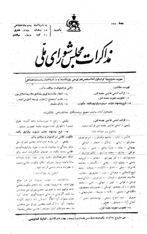صورت مشروح مذاکرات فوقالعاده مجلس شورای ملی روز یکشنبه (۲۹) امردادماه ۲۵۳۷ شاهنشاهی