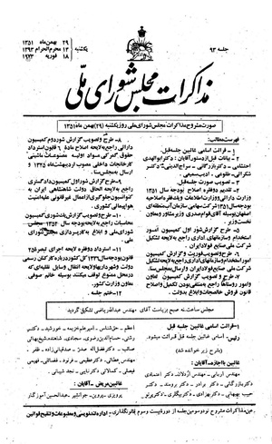 مذاکرات مجلس شورای ملی ۲۹ بهمن ۱۳۵۱ نشست ۹۳