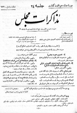 صورت مجلس روز یکشنبه ۲۵ فروردین ماه را آقای (طوسی) منشی خواندند.