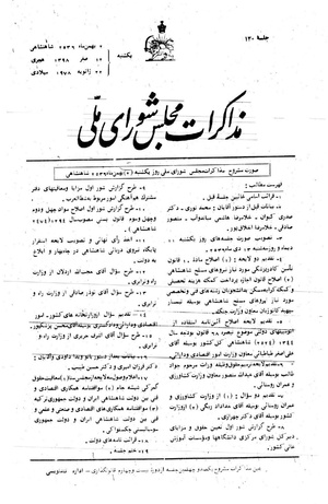 صورت مشروح مذا کرات مجلس شورای ملی روز یکشنبه (۲) بهمن ماه ۲۵۳۶ شاهنشاهی
