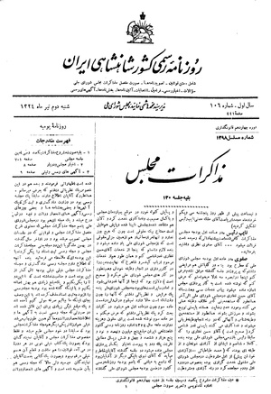 سال اول - شماره ۱۰۶ مدیر: سیدمحمد هاشمی نماینده مجلس شورای ملی - شنبه دوم تیر ماه ۱۳۲۴