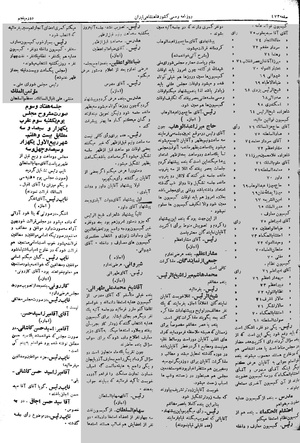 نایب رئیس جلسه را ختم میکنیم. جلسه آتیه روز سه شنبه سه ساعت و نیم قبل از ظهر. اولاً پیشنهاد آقای داور ثانیاً پیشنهاد شاهزاده شیخ الرئیس راجع بطبع ونشر دوسیه بود اغیانس و انتخاب کسری کمیسیونها که پریروز هم اعلام شد کمیسیون معارف دو نفر. کمیسیون داخله دو نفر. کمیسیون نظام یکنفر. کمیسیون عدلیه یکنفر. کمیسیون نفت سه نفر. آقای مشار اعظم(اجازه)