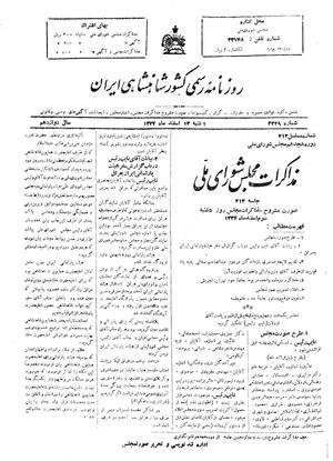 مذاکرات مجلس شورای ملی ۳ اسفند ۱۳۳۴ نشست ۲۱۲