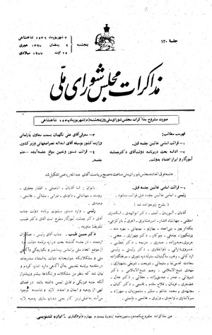مذاکرات مجلس شورای ملی ۳ شهریور ۲۵۳۶ شاهنشاهی نشست ۱۲۰