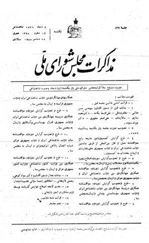 مذاکرات مجلس شورای ملی ۴ دی ۲۵۳۶ شاهنشاهی نشست ۱۳۷