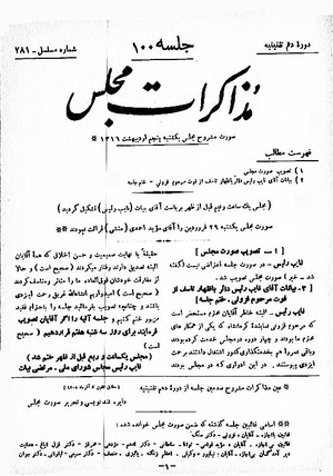 مذاکرات مجلس شورای ملی ۵ اردیبهشت ۱۳۱۶ نشست ۱۰۰