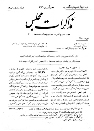 مجلس یکساعت و ربع پیش از ظهر بریاست آقای امیرتیمور (نایب رئیس) تشکیل گردید.