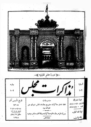 مذاکرات مجلس شورای ملی ۶ اسفند ۱۳۰۸ نشست ۱۰۲