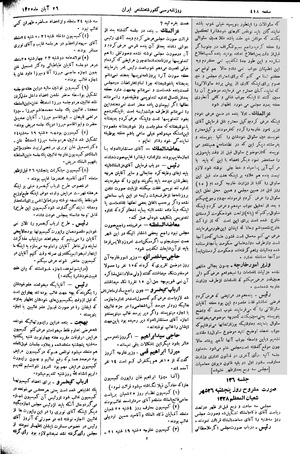 ۶ ـ کمیسیون قوانین مالیه در این هفته دو جلسه تشکیل به واسطه حاضر نشدن اعضاء داخل مذاکرات نشد غائبین هر دو جلسه : میرزا اسدالله خان . متین السلطنه . دهخدا . غائبین یک جلسه محمد هاشم میرزا . میرزا مرتضی قلیخان . ابوالقاسم میرزا . آقایان صدیق حضرت و ابوالقاسم میرزا . در یک جلسه مریض بودند.
