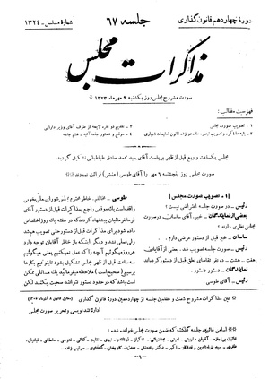 مذاکرات مجلس شورای ملی ۹ مهر ۱۳۲۳ نشست ۶۷
